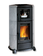 Εξωτερική επικάλυψη από στεατίτη • Πόρτα, βάση και πάνω δίσκος από χυτοσίδηρο • Κεραμικό γυαλί ανθεκτικό έως 750°C • Αποκρυπτόμενο συρτάρι στάχτης